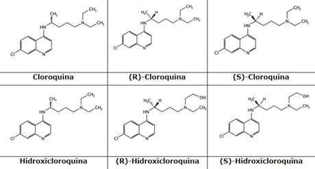 A CQ e a HCQ são administradas como difosfato e sulfato, respectivamente, em suas formas racêmicas, ou seja, em misturas equimolares de seus respectivos enantiômeros, R e S (Figura 1).